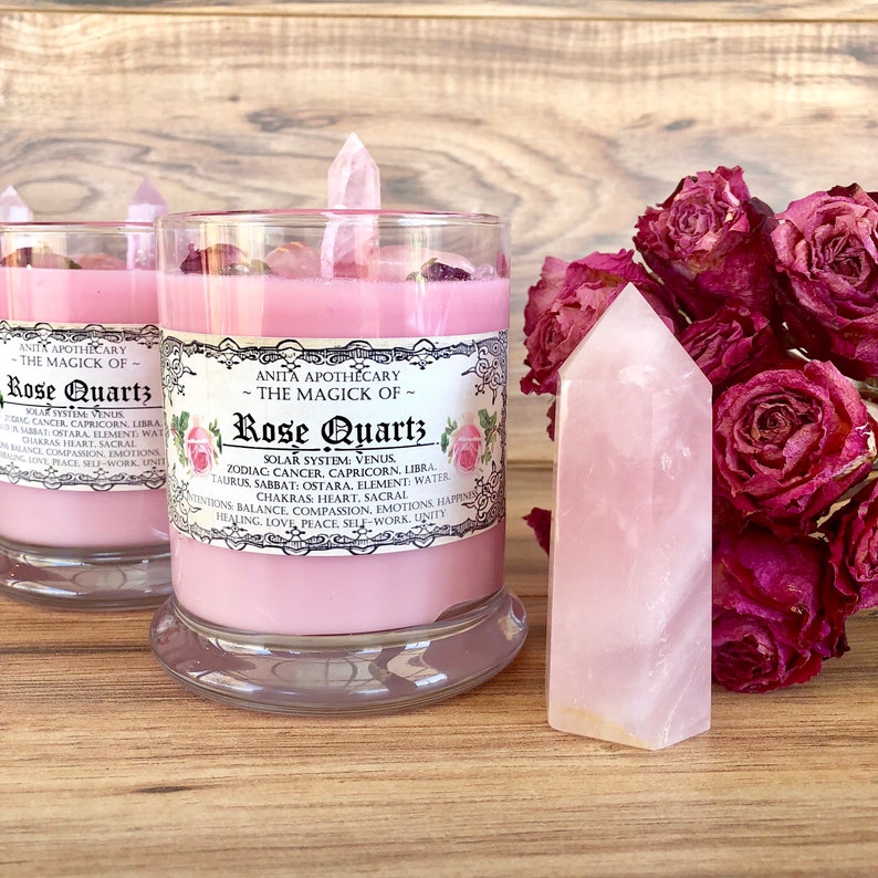 Rose Quartz Candle Rose Quartz Witches Crystal Quartz Etsy Ireland
